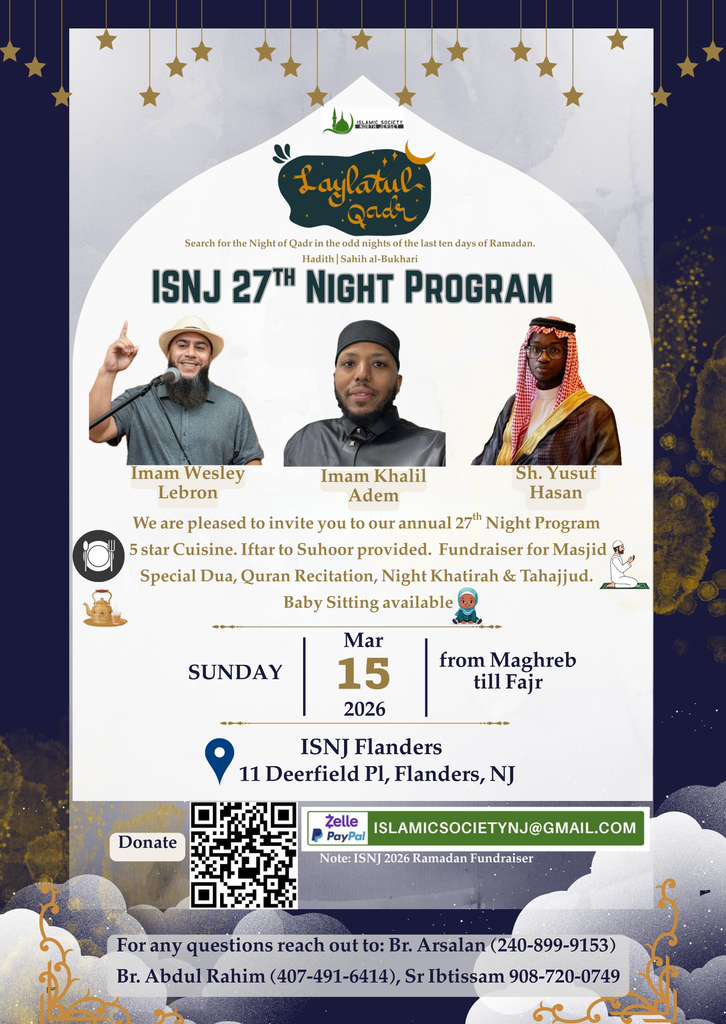 The Islamic Society of North Jersey (ISNJ) was established in February 1999 in Budd Lake, NJ upon the guiding principles of the Qur’an and Sunnah. The community began with 75+ members and now contains 200+ active members, Alhamdulillah.