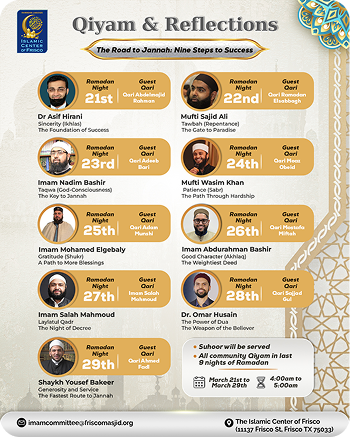 Ramadan Kareem! Here, you will find all Ramadan-related resources from the our Islamic Center, including iftar timings, upcoming events, and important policies and announcements from the administration. If you have any questions.