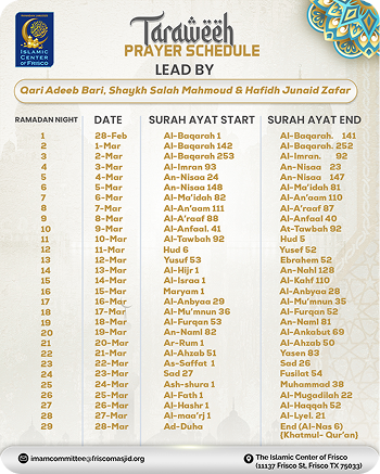 In addition to the five daily prayers, many Muslims perform extra nightly prayers called Taraweeh and additional forms of worship such as tahajjud, itikaf, and an increase in reading the Qur’an.